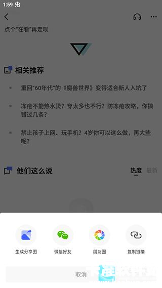 2、在文章的最下方点击分享选项。