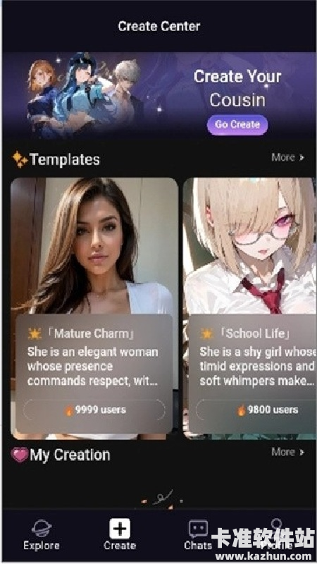 4、丰富的角色库和创建角色、故事的功能,为用户提供了多样化的聊天内容和场景,不易感到枯燥。
