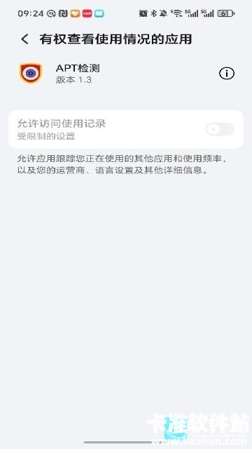 在 “有权查看使用情况的应用” 页面,可选择是否开启 “允许访问使用记录” 功能,该功能用于跟踪设备应用使用频率、运营商、语言设置等信息,辅助检测异常环境。
