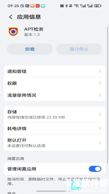 进入 “应用信息” 页面,可进行卸载、强行停止操作,还能管理通知、权限、流量使用情况、存储、耗电详情等,也可开启 “管理闲置应用” 功能,优化 APP 闲置时的资源占用。