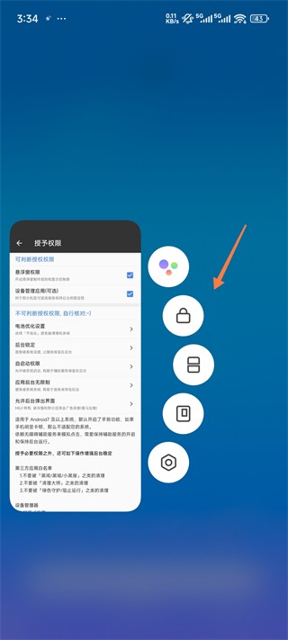 6、将【悬浮窗权限】,【设备管理应用】打√