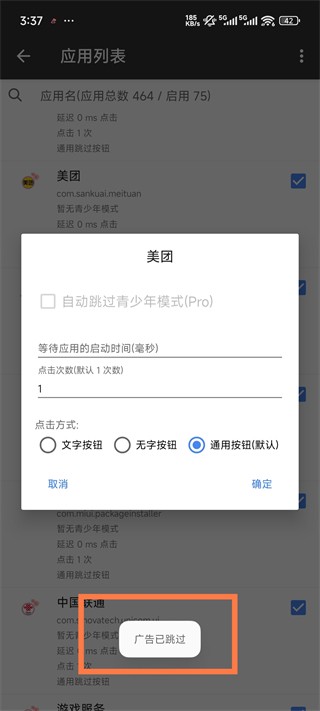 应用安装默认会开启有广告的应用,可以根据需要开启/关闭跳广告