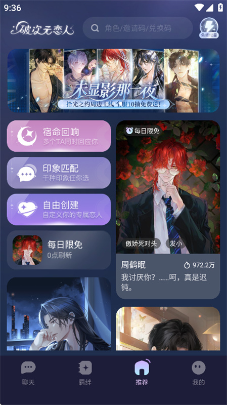 穿越次元app是一款智能化的AI聊天机器人类型软件,在这款软件之中可以为你构建出丰富的角色库存以及剧情设定,你可以在日常闲聊以及知识获取之中对不同的AI角色展开完全不一样的对话。穿越次元app之中可以很好的帮助你改善传统聊天工具的机械感,获取充满了活人感的聊天体验,得到差异化的社交体验,并且软件之中的所有角色都是完全24小时的在线哦。