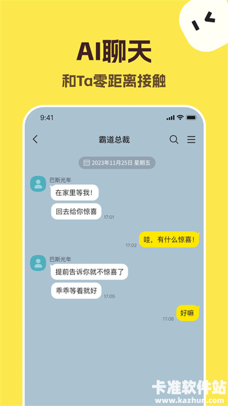 kirakira ai软件是一款专门为了女性用户打造出来的AI陪伴类型虚拟聊天工具,在这款软件之中可以很好的进行一系列的角色性格的设定,完全的按照你的喜好来自定义的定制人设,除了自由的对话之外,还可以根据手动的方式开启无限次的模式。kirakira ai软件之中可以直接的让你完全不受到任何束缚的讨论个各种不一样的话题,享受舒适的聊天体验,回复的速度也非常得快哦。