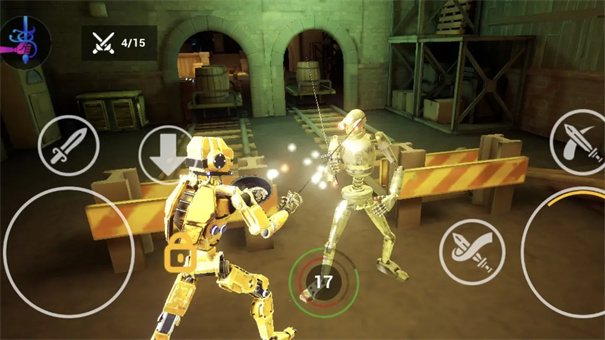 机器人剑术对决是一款机器人题材的动作格斗类手机游戏,玩家将化身剑术大师,返璞归真使用各类在中世纪决斗中常见的武器参与战斗,包含刺剑、双手大剑、剑盾在内的诸多武器均可随心挑选。在机器人剑术对决中,玩家将在一系列关卡内和其他与自己敌对的机器人进行一场激烈的战斗,利用地形和数倍于己的敌人进行周旋,并找准时机运用致命的攻击击败对手来取得胜利,丰富的游戏场景以及各类使用不同中世纪决斗武器的机器人可供玩家选择挑战,带给玩家丰富多彩的游戏体验。喜欢格斗类游戏的玩家赶紧下载吧!