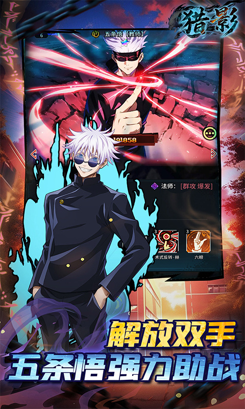 猎影游戏是一款由日本动漫改编而来的一款RPG角色扮演类型游戏,在这款游戏之中你将会体验到各种不同动漫之中的经典角色,不该是五条悟、虎杖悠仁、伏黑惠还是钉崎野蔷薇等等不同的知名角色都会在游戏之中为你呈现。猎影游戏之中你需要保持自己的咒术战斗能力,并且还有各种知名的声优角色全程进行配音,可以给你带来最为真实以及最为完善的游戏体验,成为最厉害的咒术师吧。