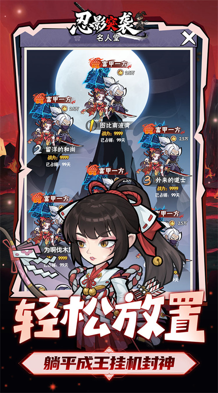 忍影突袭游戏是一款颠覆传统的忍者主题开箱冒险类型游戏,在这款游戏之中你将会告别千篇一律的忍者修行套路,化身成为一位脑洞大开的非典型忍者,展开一场笑料百出但是异常刺激非凡的乱斗之旅。忍影突袭游戏之中你完全无需漫长并且枯燥的修行,轻轻点击屏幕,操纵自己的角色一路凭借自己,感受丰富多样的战斗场景和各种搞怪的敌人,挑战自己的反应极限以及应变能力吧。
