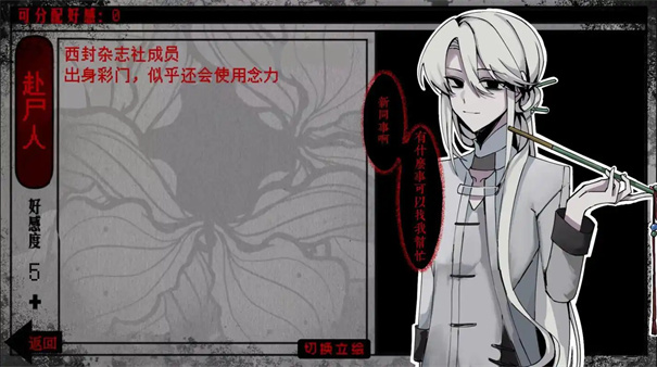 头七怪谈手机版游戏是一款融合了众多中国民俗元素的冒险策略类型游戏,在这款游戏之中你可以和各种不同的角色进行互动,尽可能多的搜集各种不同的线索,找到论坛之中的各种不同的怪诞。头七怪谈手机版游戏之中具有相当多不同的道具可以直接使用,让你更加好的理解这些不同角色身上的秘密,游戏之中你需要时时刻刻的保持冷静,保持自己的思维以及逻辑能力吧。