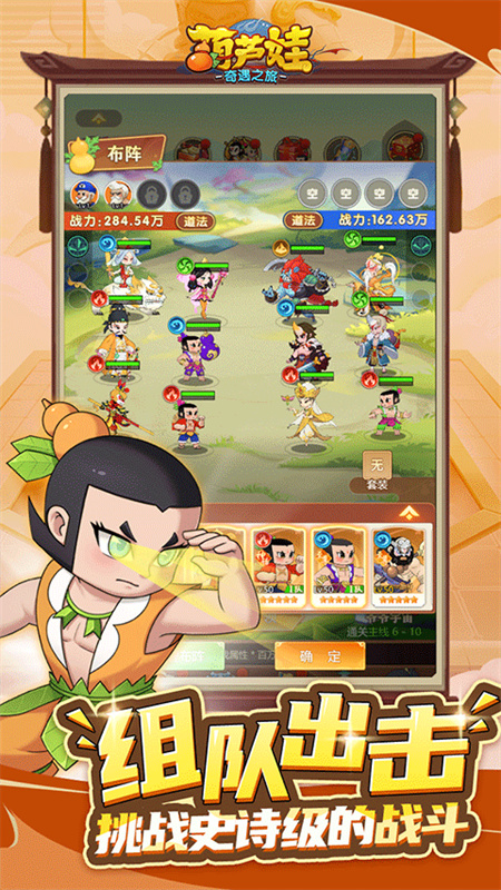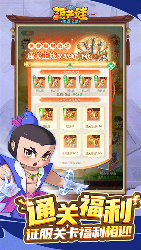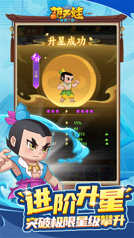 葫芦娃奇遇之旅游戏是一款相当好玩的竖版放置类型卡牌游戏,在这款游戏之中会深度的还原葫芦兄弟之中的原版剧情设定,努力唤起你童年时候的记忆,给自己一个简单并且纯粹的童年吧。葫芦娃奇遇之旅游戏之中可以很好的让你满足小时候对于葫芦兄弟们的向往以及感动,各种不同的副本以及养成内容都可以帮助你很好的培养你的葫芦兄弟们,简单的操作,享受无穷无尽的乐趣。