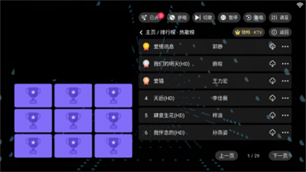 IKTV点歌台app是一款相当值得推荐的点歌类型软件,在这款软件之中你可以很好的体验到安装以及稳定的调试体验,画面相当的丰富以及大方,富有完美的艺术美感,并且还有多种不一样的风格可以供你进行选择。IKTV点歌台app之中具有多种不一样的皮肤以及各种不同的歌曲,你可以直接的在这里通过歌名以及歌曲内容来进行体验,寻找不一样的功能来进行体验吧。