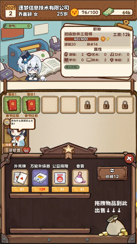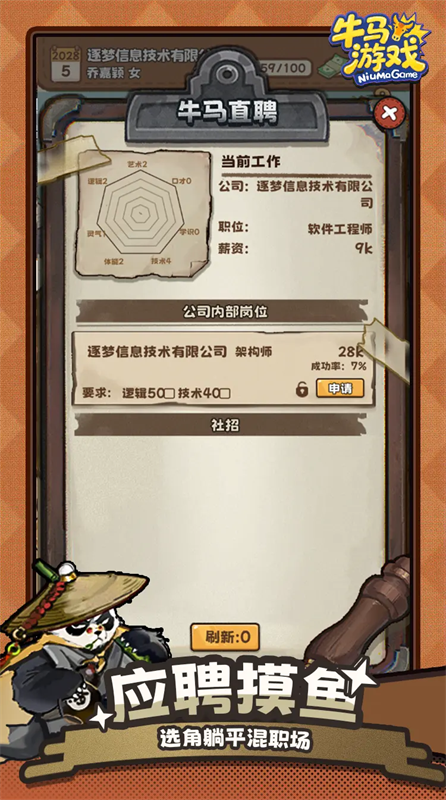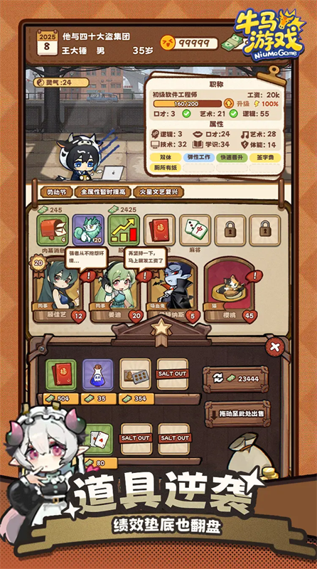 牛马游戏是一款打工模拟类手机游戏,玩家将扮演一位穿越到牛马世界的黑客,从程序员开始利用自己的黑客技能找出这个世界存在的BUG,并让自己能够在工作中获得更好的表现,修改游戏数据的同时,成为生存规则的改写与制定者。牛马游戏设计了丰富的随机事件以及可支持玩家跨周目继承的天赋系统,不仅让玩家每次游玩都是一次崭新的开始,更助力玩家在多个周目的游玩过程中逐渐轻松,享受在游戏中辛苦操劳后收获的乐趣。喜欢模拟类游戏的玩家不容错过,赶紧下载游戏体验吧!