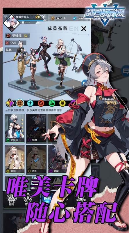 战斗天使游戏是一款经常刺激的科幻风格二次元策略卡牌类型游戏,在这款游戏中很好的采用了最为顶尖的引擎打造成,游戏之中的话画质以及场景都相当的唯美动人,人物角色生动形象的同时还描绘出了一个非常宏大的奇幻西方异世界。战斗天使游戏之中你将会和各种不同的女神机器人一起展开一段充满了科幻的冒险,不断地击败眼前的敌人,获取游戏的胜利,成为最厉害的指挥官吧。