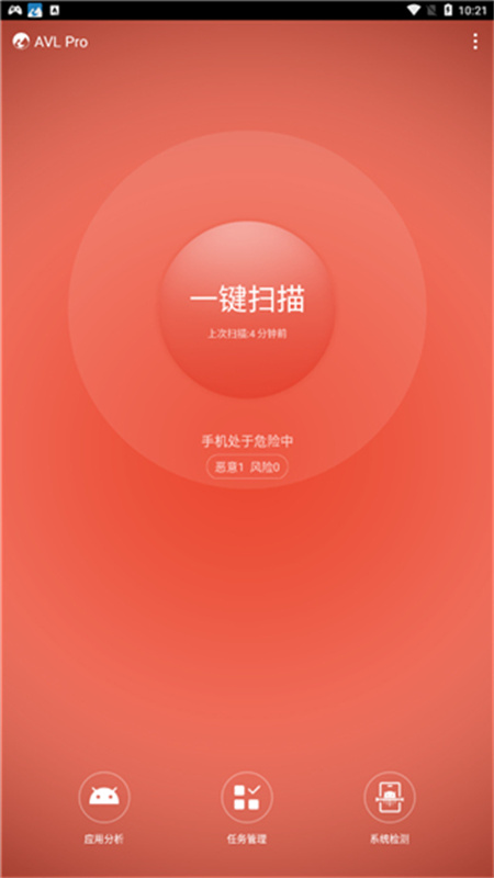 avl杀毒app是一款相当稳定以及快速使用的手机杀毒类型软件,在这款软件之中很好的具备了全面检测、快速检测以及强大的志愿体系的三大特色功能,可以智能化的扫描你的手机孩子中的不同应用代码,提供哥各种不一样的检测开关。avl杀毒app之中可以很好的提升你的扫描速度以及检测能力,让你的手机获取一个安枕无忧的环节,得到无比丰富的检测开关以及配置的选项吧。