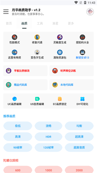 鸡仙画质助手官方版app是一款可以给你带来各种不一样的画质辅助的软件,在这款软件之中可以很好的帮助你修改各种不同的游戏之中的参数,软件之中的界面相当的简洁,操作也相当的简单,你可以直接的解锁120帧的画质来进行解锁。鸡仙画质助手官方版app之中的所有功能都是完全免费的,可以直接的给你带来使用的体验,享受不一样的下载内容,轻轻松松的就可以拥有稳定的画质哦。