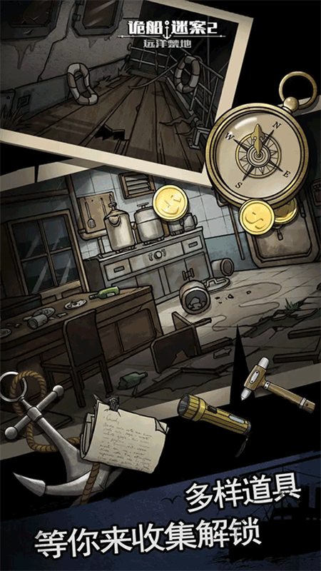 诡船谜案2是一款悬疑题材的解谜类手机游戏,基于多部知名小说改编,玩家将在蒸汽游轮和废弃的渔船上和自己的同伴进行探索,揭开一系列诡异事件背后的真相,并将导致这一切的幕后凶手绳之以法。诡船谜案2以密室逃脱类解谜玩法为核心,玩家将在众多场景中进行探索解谜,通过挖掘出关键线索拼凑出一条完整的线索链条,以此对整个故事脉络有一个清晰的认知。对解谜类游戏感兴趣的玩家快快下载体验吧!