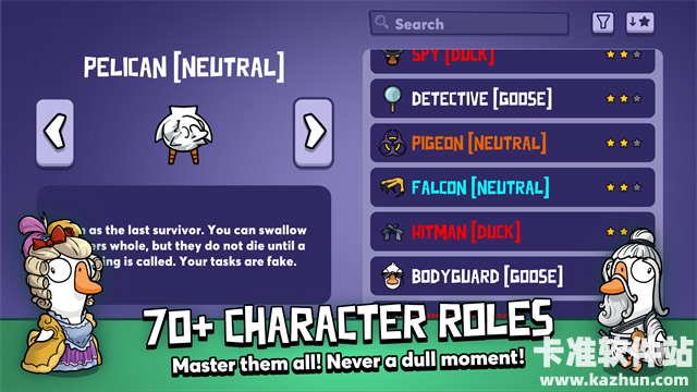 鹅鸭杀手游是一款社交推理类手游,游戏完美移植端游玩法和模式,玩家们将操控鸭子角色开启推理每一个角色都有着不同的身份,超多的职业可以自由的选择, 玩家们需要挑选自己喜欢的角色开启冒险,玩家们需要隐藏自己的身份,找出不通过阵营的玩家们,最终获得游戏的胜利,游戏非常考验玩家们的推理能力和策略能力,不要泄露自己的身份,在这个极致精彩的推理挑战中赢得胜利。