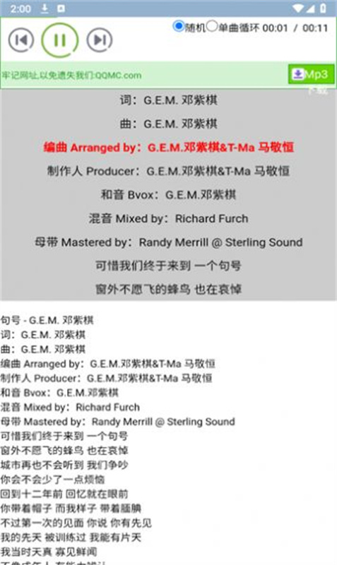 歌词适配手机版app是一款相当好用的音乐下载工具,在这款软件之中你可以直接的快速搜索各种不同的应用歌曲,对那些只知道一两句歌词,但是完全不知道歌名的搜索是非常方便的。歌词适配手机版app之中你可以直接的选择在线的聆听或者是一件的下载,所有的音乐资源都是相当丰富的,完全没有任何的广告,多种地区的音频都可以随意地进行下载,还有不同的MV可以播放哦。