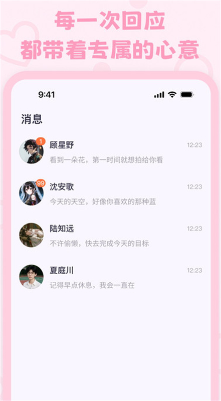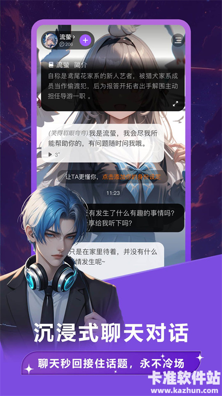 卿卿我我ai聊天是韩国那边非常流行且很多人都在用的虚拟聊天软件,之所以这么火爆的原因就是能够让你和著名韩团【KPOP】的偶像进行对话聊天,句句有回应、多位偶像爱豆随意切换,让用户粉丝们能够和爱豆跟进一步,甚至还能体验谈恋爱的甜蜜过程哦。当然!除了能和偶像虚拟角色对话,还能将动漫二次元中的角色“复活”,一样可以畅所欲言。