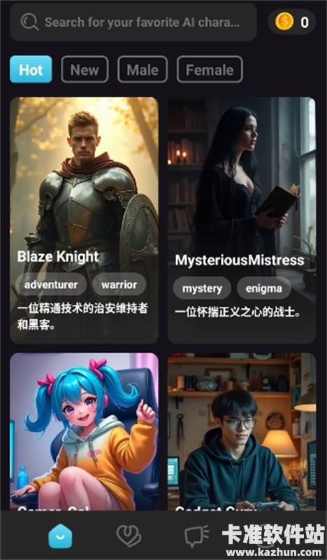CharacterAI是一款无屏蔽词的国内可用虚拟聊天软件,打开默认就是中文语言,同时官方也提供了众多AI角色给你去做选择,既有动漫角色、小说主角以及偶像爱豆等,除此之外!各位还能自定义角色以及场景故事,能够给予用户你最自由的聊天氛围。CharacterAI中的角色都具有很强的拟人感,无论是要陪伴、互动都行哦。
