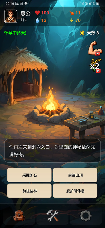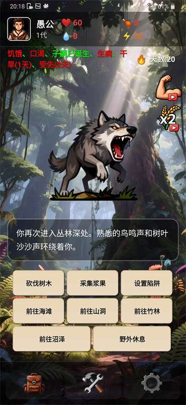 愚公海岛生存是一款文字生存冒险类手机游戏,玩家将扮演一位被困于海岛上的远古时期人类,为了让自己的家族能够离开海岛,以移山的愚公为榜样在一代又一代人的努力中建造能够容纳整个聚落的船只,最终离开海岛,开启全新的生活。愚公海岛生存以文字冒险生存玩法为核心,并以类似于《祖宗模拟器传承》的传承系统,让玩家能够在不可避免的死亡后将重要物资以及进度留给下一代,以此让下一代能够继承遗志,最终成功离开海岛。对愚公海岛生存感兴趣的话,就快快下载游戏体验吧!