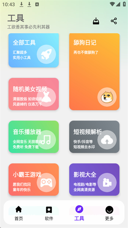 小二软件库app是一款软件在线下载类型软件,在这款软件之中你可以获取各种不同的讯息以及软件的下载路径,各种不同的图片,二维码以及逻辑都可以在这里以最快的速度来回去,进行一系列的快递查询,AI绘图以及视频转GIF文本等等,各种超级实用的工具都可以直接的在这里搜索到。小二软件库app之中可以让你得到完全不一样的软件下载体验,以自己的方式寻找不同的软件,找到自己想要的版本进行下载吧。