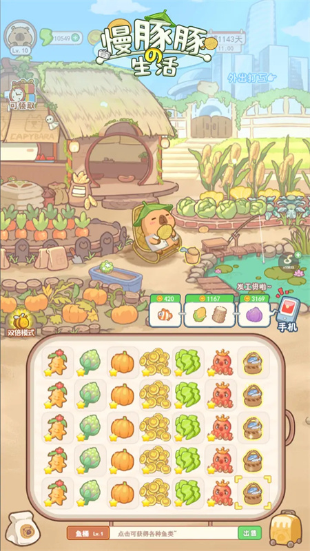 慢豚豚生活是一款治愈系休闲模拟经营游戏,玩家将化身为一个职场受挫的卡皮巴拉,在自己被辞退以后回到乡下老家,经营一亩自己的田园,通过合成的方式开启自己的经营新生活,完成一系列订单来获取让人眼红的利润,最终实现自己建设梦想家园的美好心愿。慢豚豚生活提供了多种经营选项,从种菜、钓鱼到养殖应有尽有,带给玩家十分充实的田园生活。除此之外,慢豚豚生活还有各种风格独特的家具与装饰,让玩家可以以自己的风格喜好自由装修,创造出属于自己的理想港湾。喜欢模拟经营类手游的话,就赶紧下载游戏体验吧!