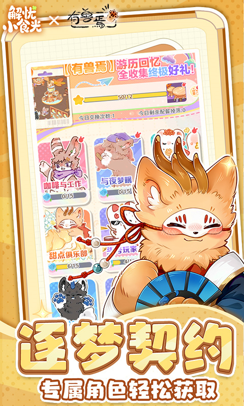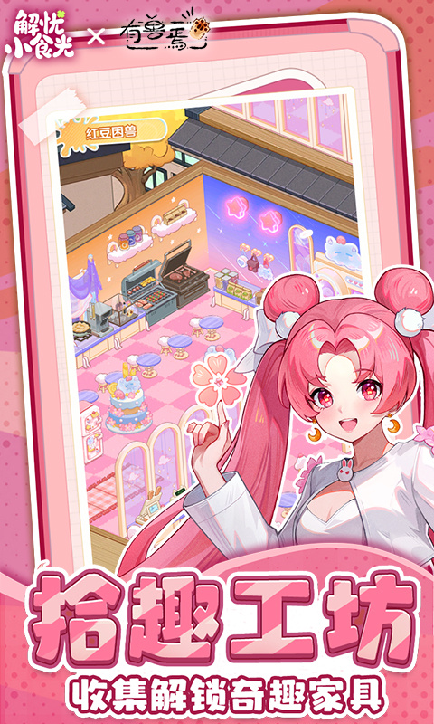 解忧小食光是款有兽焉IP联动治愈系模拟经营游戏,在森林深处打造专属美食小店,研发甜品、热饮等百种食谱,招募特色店员提升效率,通过装修与服务积累口碑。游戏融入尾尾木作、厨王秀等多元玩法!呆萌貔貅皮皮化身特别店员,收集记忆碎片可解锁联动时装、神兽主题家具。听顾客倾诉故事,与上古神兽共事,在暖光与烟火气中化解烦恼,每一份美食都藏着治愈力量。轻松操作适配所有玩家,快来和皮皮共赴这场暖心经营之旅吧~